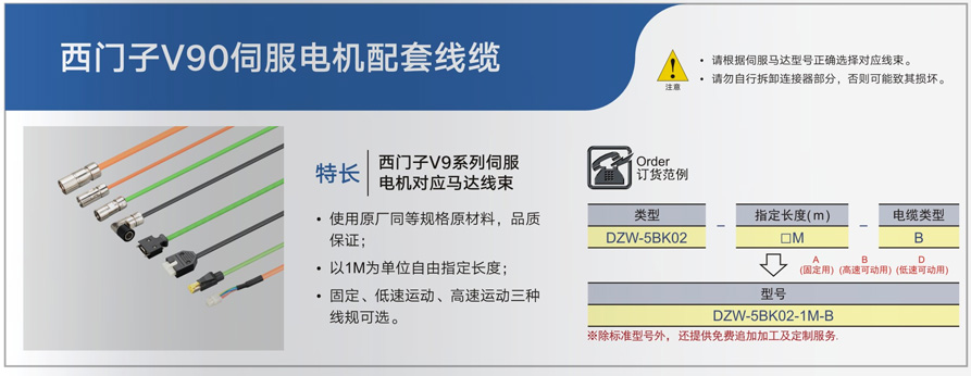 西门子Siemens伺服V90电缆,是伺服驱动器与伺服电机的桥梁。线束采用500万以上拖链电缆+高品质连接器制作。 可根据电机跟驱动器的不同,任意挑选或定制任意长度伺服电缆线。 如您有任何技术上的疑问,请联系客服,我司将会安排专业高级工程师予以解答。